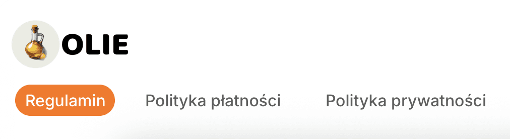 Na potrzeby aplikacji, integracji z systemem płatności, czy google play przygotowałem: Regulamin OLIE, Politykę prywatności oraz Politykę płatności dla subskrybentów aplikacji. Dokumenty zostały już przypięte do stopki strony